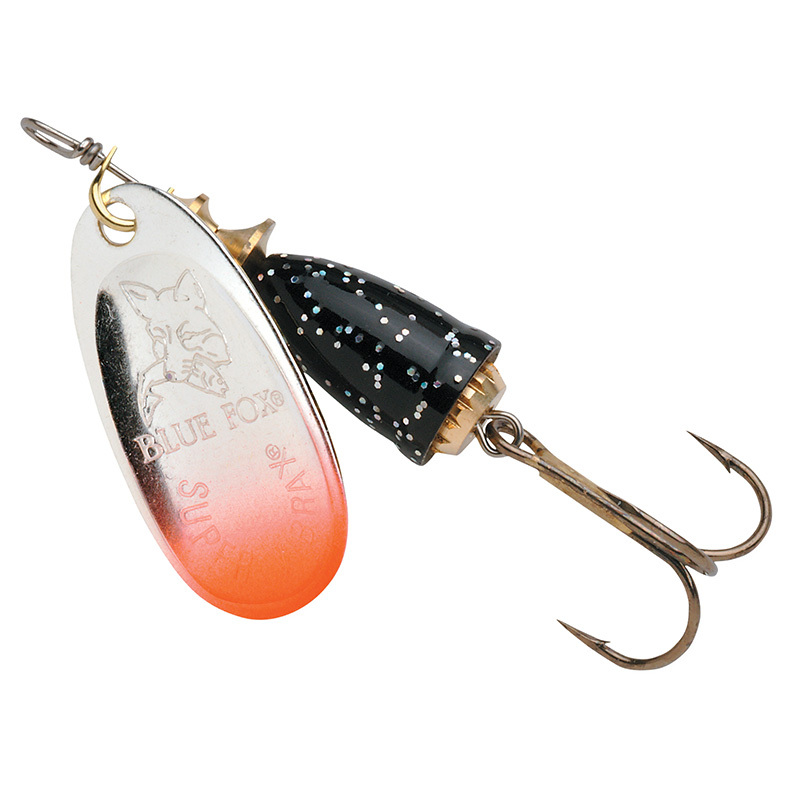 Блесны, покрытые светящимся составом, эффективны не только ночью. Их использование оправдано в мутной воде или при плохой освещенности, которая случается при высокой облачности, в дождь и на зорях. Результативность этих металлических приманок связывают с их активным воздействием не только на зрение, но и на другие органы чувств хищной рыбы. Ротор-колокольчик генерирует низкочастотные звуковые волны, на которые очень отзывчиво реагируют самые разные хищники. Мгновенно включающийся в работу лепесток, распространяет интенсивные волновые колебания, четко пеленгуемые боковой линией хищных рыб. Очевидно, что именно из-за комплексного воздействия на все органы чувств, блесна Blue Fox Vibrax Fluorescent считается одной из самых эффективных вертушек в своем классе.