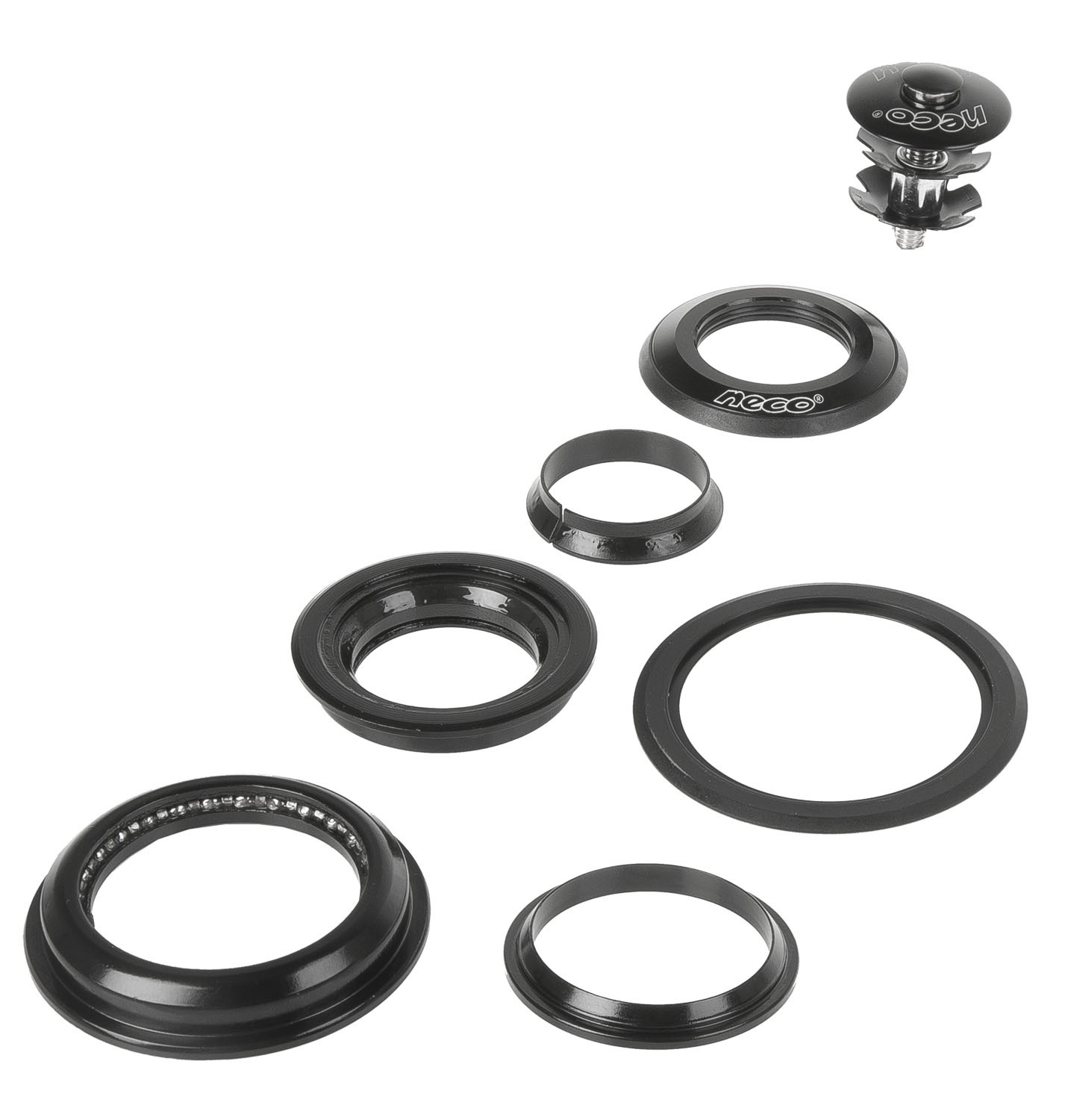 Рулевой набор сталь полуинтегр. полукартр. 1 1/8"-1,5" 28,5/44/55/39,8мм черный NECO