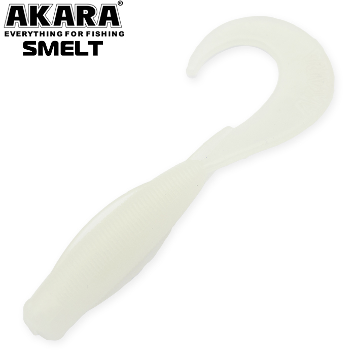 Akara Smelt - оригинальный твистер с боковыми крыльями, которые придают ему хорошую устойчивость при проводке, особенно при применении поводковых оснасток. Выпускается в размерах 65 и 80 мм.