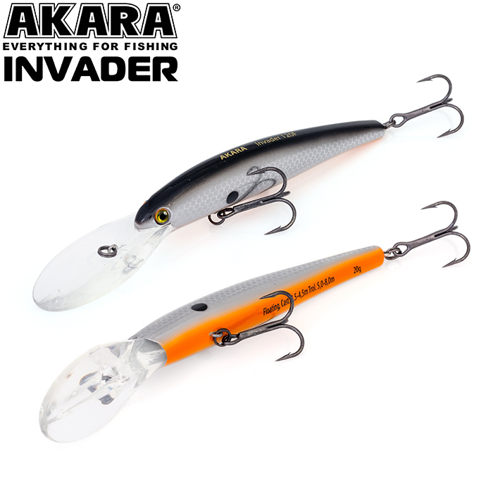 Invader 120F - воблер для ловли на средних и больших глубинах. Обладает характерной рыскающей игрой, что вкупе с шумовым эффектом показывает отличные результаты при ловле щуки, сома и крупного судака. Плавающий. Акустический.Заглубление при кастинге от 3,5 до 4,5 м, при троллинге от 5,0 до 8,0 м.