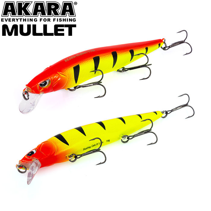 Mullet 110F - плавающий воблер класса миноу для ловли твичингом. Лучшей аннимацией являются резкие рывки с короткими паузами. Отлично показал себя при ловле щуки на небольших глубинах, а так же судака на мелководье в вечернее время. Акустический. Кастинг 0 до 1,5 м.