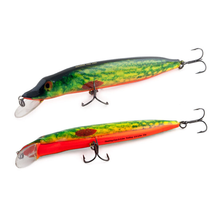 Pike - оригинальная, популярная модель для ловли щуки. Воблер в размере 130 мм успешно применяется при троллинге на малых глубинах, а приманки меньших размеров 90 и 110 мм можно использовать в заброс и при агрессивном твиче. Плавающий. Акустический. Заглубление при кастинге 0 до 1,5 м., при троллинге 1,5 до 2,5 м.