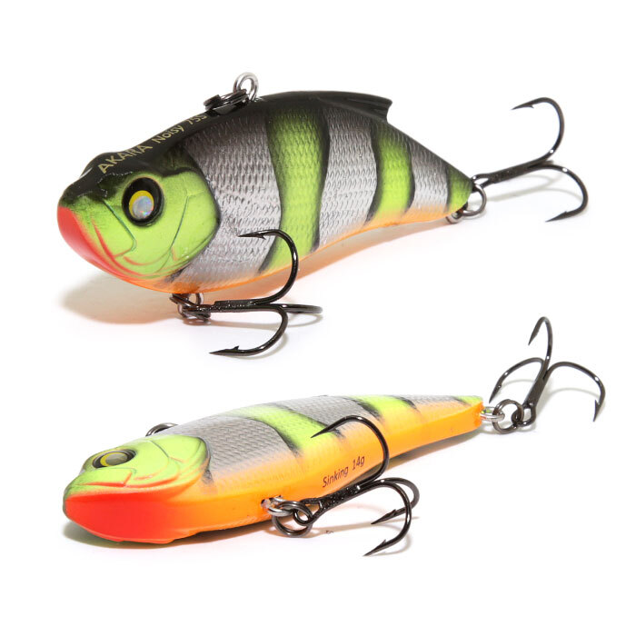 Akara Noisy - воблер является классическим зимним воблером, и как у остальных приманок данного класса, крепежное отверстие для лески расположено на спине. Воблер шумовой, оборудован двумя тройниками и выпускается в трех типоразмерах: 60, 75 и 85 миллиметров. Основной особенностью данной приманки является уникальная, очень качественная и реалистичная игра, причем воблер прекрасно играет как на горизонтальной летней, так и на вертикальной зимней проводке. При вертикальной Akara Noisy игре прекрасно собирает рыбу с дальних расстояний и провоцирует её на поклевку. Воблер окрашивается как в классические, так и в яркие, раздражающие цвета, что позволяет выбрать приманку, подходящую для любых условий лова. Дополнительную эффективность приманке придает то, что при окраске применяются краски с UV эффектом. Akara Noisy будет эффективен для ловли хищной рыбы (судака, щуки и окуня) как на зимней, та