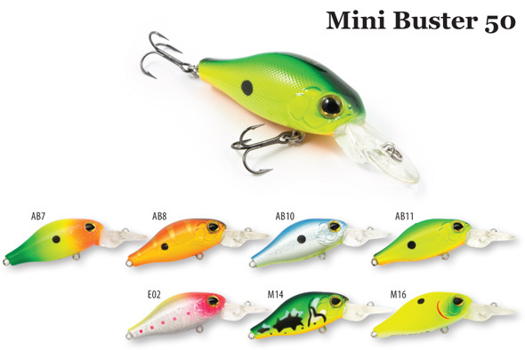 Mini Buster 50 - воблер обладает активной игрой с высокой частотой и средней амплитудой колебаний. Показывает хорошие результаты при использовании проводки с периодическими контактами с дном, будь то троллинг или ловля в заброс, шумовой эффект и облако мути неизменно провоцируют хищника на поклевку. Плавающий. Акустический. Заглубление при ловле в заброс от 1,0 до 2,2 м, при троллинге 1,5 до 2,6 м.