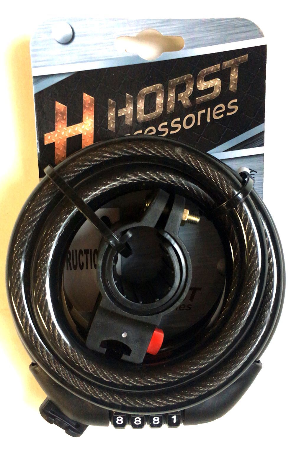Замок вело кодовый (4 разряда) 12х1500мм с креплением на раму, черный HORST