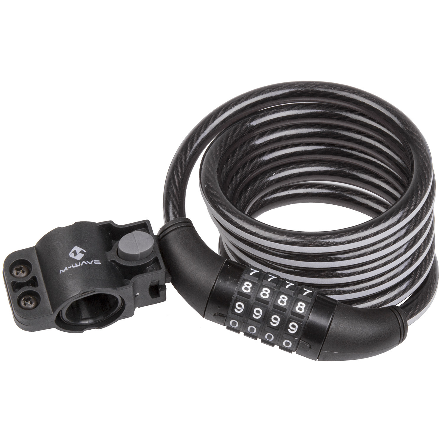 Замок велосипедный M-WAVE 10х1500 мм кодовый (4 разряда) с отражающей полосой с крепежом